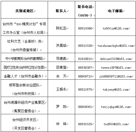 七、附件 《台州市高层次人才分类目录》 具体可登陆台州市500精英计划网(http://www.tzts.gov.cn)、365bet平台规则(http://www.okjzv.com/)或台州人才网(http://www.tzrc.com/)进行政策查询和申报表格下载。