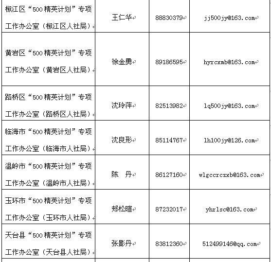 台州市“500精英计划”专项工作办公室 2017年5月18日 附件