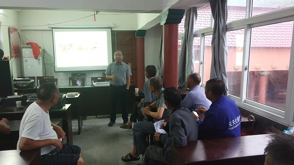 参加活动的专家有,浙江省柑橘研究所所长陈国庆,浙江省柑橘研究所书记施灵荣,浙江省柑橘研究所党委委员、植保研究室主任黄振东,浙江省柑橘研究所栽培研究室副主任王鹏,浙江省柑橘研究所农产品检测中心平新亮,浙江省柑橘研究所品种研究室主任柯甫志,浙江省柑橘研究所植保研究室蒲占湑。 本次活动的主要行程有:一是就病虫害防治工作开展教学;二是到桃峙村柑橘园实地指导。 在活动开始前,桃峙村已经提前在村内做了动员,并将参加指导活动的农技专家简历在村内醒目位置予以张贴。 活动当天,桃峙村大会议室爆满,人流攒动,当天参加培训的农民共计100余户。果农参加听课积极性很高,并就有关种植问题积极向专家请教。随后专家组一行还到桃峙村柑橘林实地指导,并就有关问题向农户逐一进行了反馈。 研究所所长陈国庆认为,桃峙村有4000亩的柑橘林,是村内的支柱性产业,柑橘产业大有可为。同时,桃峙村的区位优势非常明显,到三门县城、以及市区路程都不到1小时,可以适当发展柑橘采摘游。研究所党委委员、植保研究室主任黄振东建议桃峙村将柑橘产业做大做强,搞个文化节,打响品牌,享受柑橘品牌溢价;走绿色发展路线,在柑橘林周边选好点、栽种些草皮、格桑花,发展农家旅游;走科技兴农战略,购置柑橘糖分分级机器,自动筛选糖分高品相好的果子,可以小包装精品销售;培养一批柑橘能手,形成梯队,带动全局。