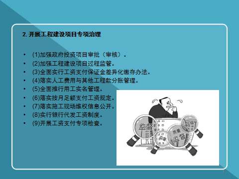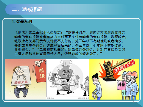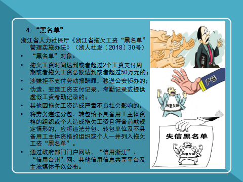 县人社局党委委员、副局长俞超详细讲解了此次全面治理农民工工资拖欠问题和“浙江无欠薪”行动的背景,目的是转变大家传统劳务和工资支付管理思维方式,统一对新形势的思想认识,牢固树立四个意识,提高政治站位。 (县人社局副局长俞超通过PPT作相关法律、法规和政策讲解) (参会人员认真听讲) ? 俞超副局长着重讲解了对拖欠工资的惩戒措施,包括欠薪入刑法规、认定条件,我县的典型案例,拖欠劳动报酬案件和重大劳动保障违法行为的社会公布,列入“黑名单”对象认定条件和17部门对严重拖欠工资用人单位及有关人员联合惩戒措施。